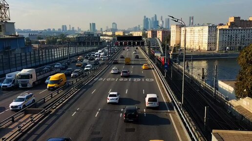 Городской трафик мегаполиса. Авто, ж/д и речной транспорты в одном месте.