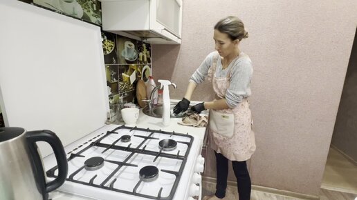 Мотивация на уборку и готовку. Чищу сковороду, готовлю крылышки, оладьи