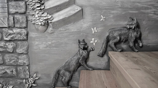 Этапы работы над тремя котами в барельефе "Три перспективы"
