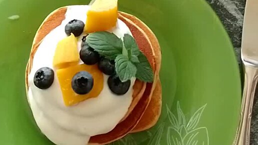 Дочь продолжает готовить ПП десерты. Сегодня панкейки.
