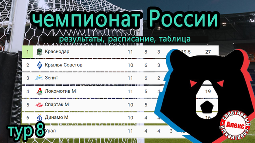 Чемпионат России (РПЛ). 11 тур. Результаты. Расписание. Таблица.