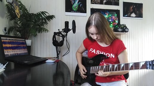 Учусь играть на электрогитаре. Дома. Кусочек из моей жизни. Алексия - 10 лет