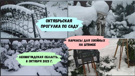 Октябрьская прогулка по саду.Опоры для хвойных на штамбе.