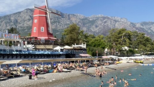 Огромная красная мельница, бирюзовое море, горы! И приличный пляж! Orange County Resort 5*, Турция