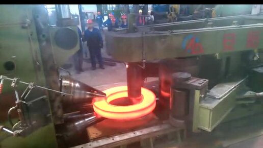 Процесс прокатки кольцевого изделия на радиально-осевом прокатном стане