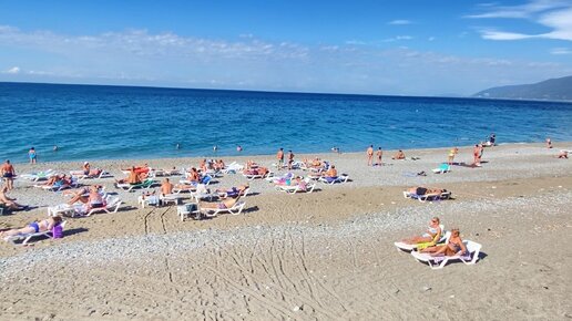 Абхазия. Новая Гагра. Октябрь 2023. На пляже много отдыхающих.