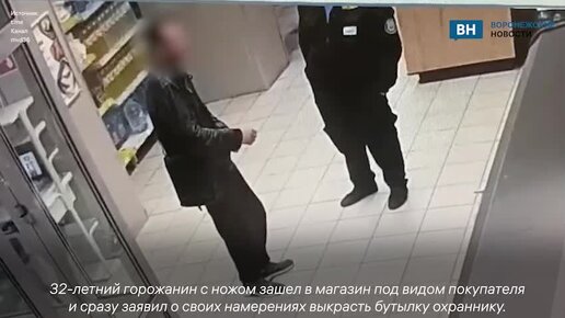 Воронежец украл бутылку спиртного из магазина после угроз охраннику ножом