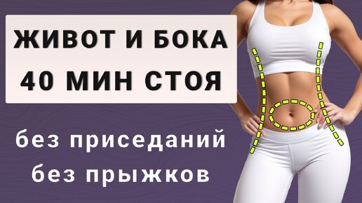 Убираем живот и бока: 40 минут жиросжигающая тренировка стоя (без приседаний и без прыжков)