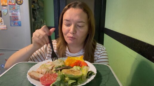 Мукбанг, ужин. Куриная грудка с овощами. Лиза ворчит за кадром😀