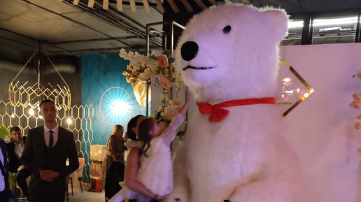 Трёхметровый медведь неожиданно появился на свадьбе. Удивила и лезгинка по-русски. Взрослые зажигают. Дети в восторге