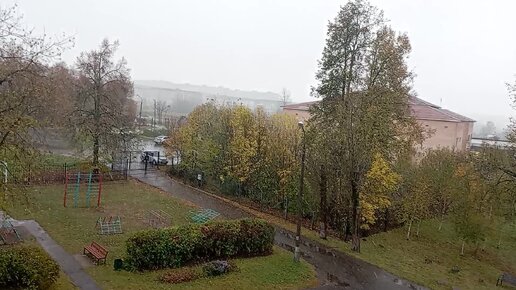 Первый снег тает, не долетая до земли, стекает по водосточным трубам, потоки воды стучит по металлической крыше.