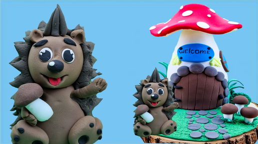 ✅️ОСЕННЯЯ ПОДЕЛКА из пластилина "ЁЖИК ГРИБНИК В ДОМИКЕ".🦔 Урок по лепке ёжика и удивительные факты.🍂