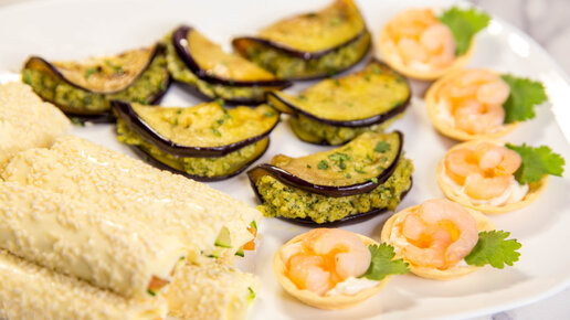 Закуски за 5 минут на праздничный стол - Закуска из баклажанов, тарталетки и вкусные закусочные рулетики