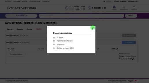 Отслеживание заказа пользователем для Moguta.CMS от Wlad007