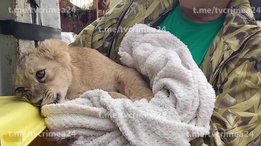 В Крым из Мелитополя привезли львёнка, над которым издевались прежние хозяева