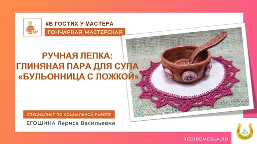 Гончарная мастерская / Ручная лепка / Пара для супа / Бульонница с ложкой