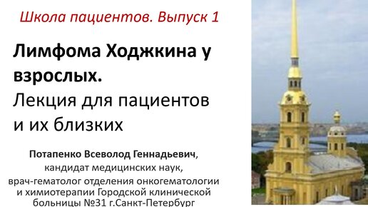 Школа пациентов. Выпуск 1. Лимфома Ходжкина у взрослых. Лекция для пациентов и их близких.