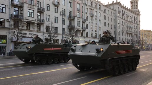Самоходки «Мста-С» проезжают мимо БТР-МДМ «Ракушка»