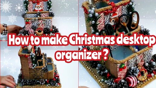 Из коробок от сока и втулок от туалетной бумаги. Органайзер своими руками.Новогодний декор. Подробная видеоинстнрукция