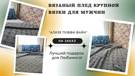 Вязаный плед из Ализе Пуффи на заказ в подарок для мужчин