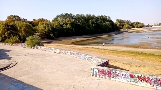 Стихийные граффити и обмелевшая Кубань в Краснодаре. Организовали бы конкурс граффити, сделали бы красиво... А то как-то не ах смотрится(