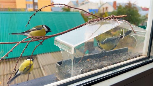 На это можно смотреть вечно! Сняла синичек на кормушке за окном