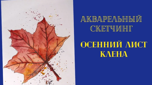 Рисуем осенний лист клена просто и быстро. Скетч акварелью