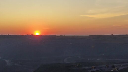 Вид на закат со смотровой площадки участка открытых горных работ разреза «Березовский»