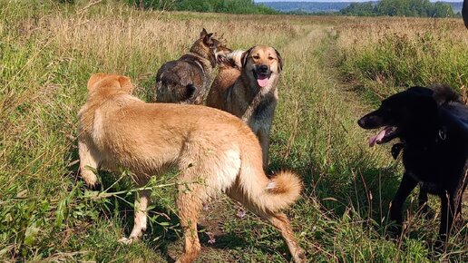 Пойдут или нет собаки за Диной через реку. Вода холодная, октябрьская. Прогулка получилась весёлой и интересной