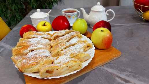 Штрудель с яблоками из слоёного теста 👌😋 Красиво, вкусно и быстро 😋