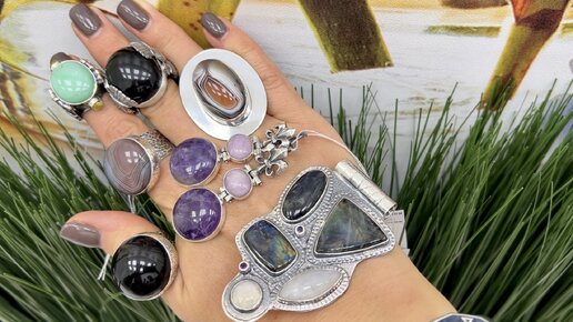 МОРИОН АГАТ БОТСВАНА АПАТИТ КУНЦИТ В СЕРЕБРЯНЫХ УКРАШЕНИЯХ ОТ ФИТ