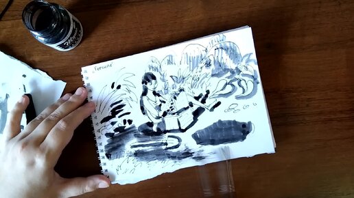 Inktober: День 10. Удача - рисунок тушью поэтапно
