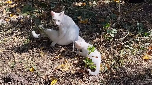 Мама с котятами на прогулке под солнышком