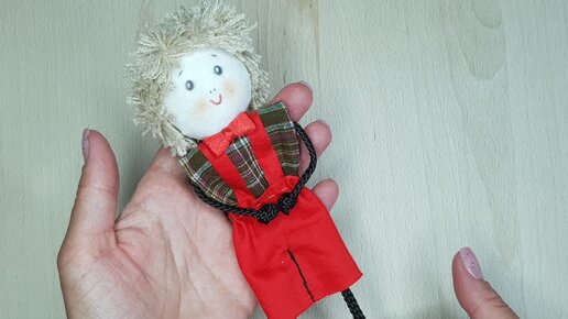 Милый мальчишка из кусочков ткани и пряжи