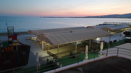 Пляж санатория "Красная Талка" в Геленджике в вечернее время.