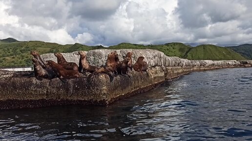 Сивучи на брекватере возле Невельска.