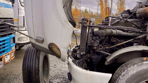 #75 Замена радиатора охлаждения Фредлайнер коламбия. Детройт 14.