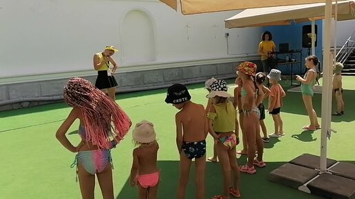 Зарядка от аниматоров на пляже санатория "Красная Талка" в Геленджике.