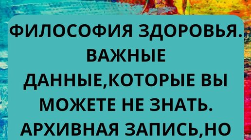 Философия здоровья.Архивная запись. Актуальности не потеряла. Важные данные,которые вы можете не знать.
