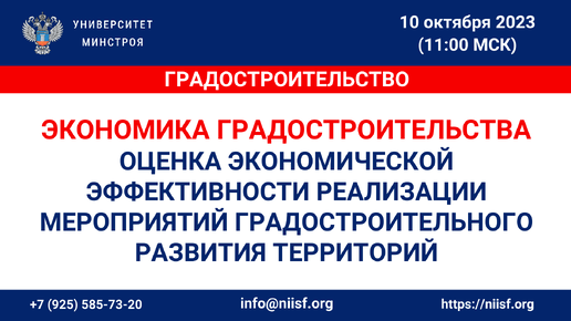 ВИДЕО. Экономика градостроительства: оценка экономической эффективности реализации мероприятий градостроительного развития территорий