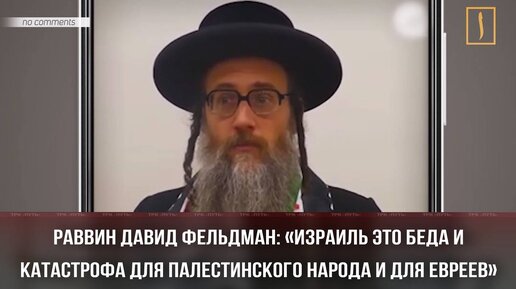 Раввин Давид Фельдман: «Израиль это беда и катастрофа для палестинского народа и для евреев»
