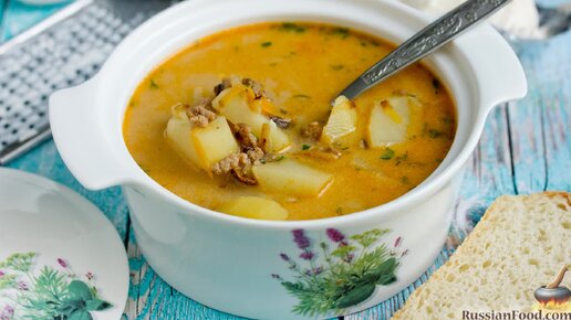 Сытный и наваристый суп, при этом не тратим время на приготовление бульона. Сырный суп с фаршем