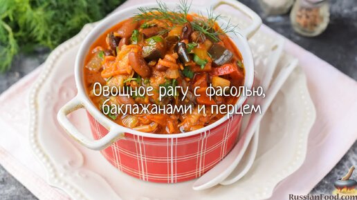 Яркое и сытное блюдо для обеда. Овощное рагу с фасолью, баклажанами и перцем