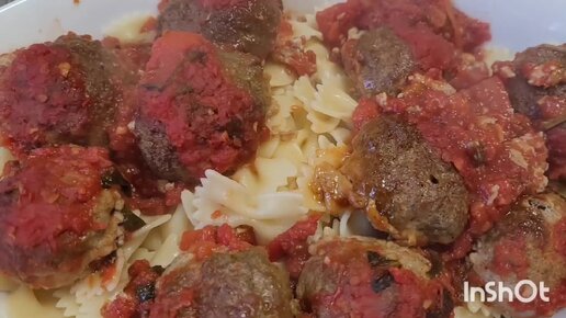 Сочные и ароматные фрикадельки, в духовке с пастой🍅🌶