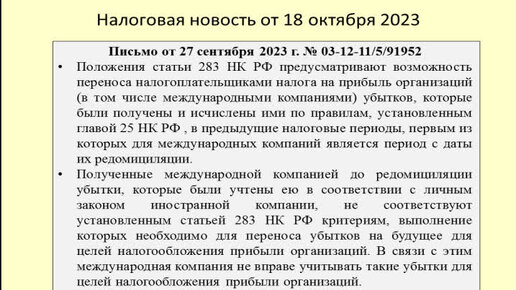 Учет убытков международной компанией после редомициляции