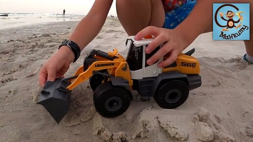 Дети и Машина. Открывает новые игрушки, катаем машинки в песке. Манкиту