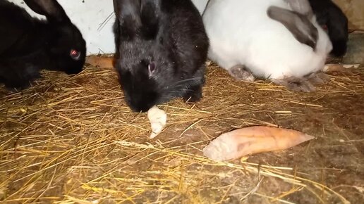 Вечернее кормление. Кролики кушают бурак.