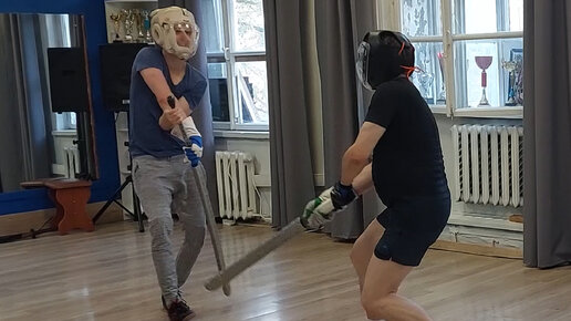 Фехтование двуручным мечом о-катана - спарринг в школе японского фехтования Katana Club на чанбара
