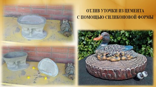 Заливка раствором из цемента в силиконовую форму уточка и опалубка для её отлива