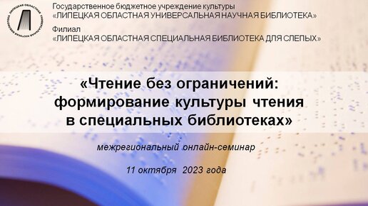 «Чтение без ограничений: формирование культуры чтения в специальных библиотеках» межрегиональный онлайн-семинар